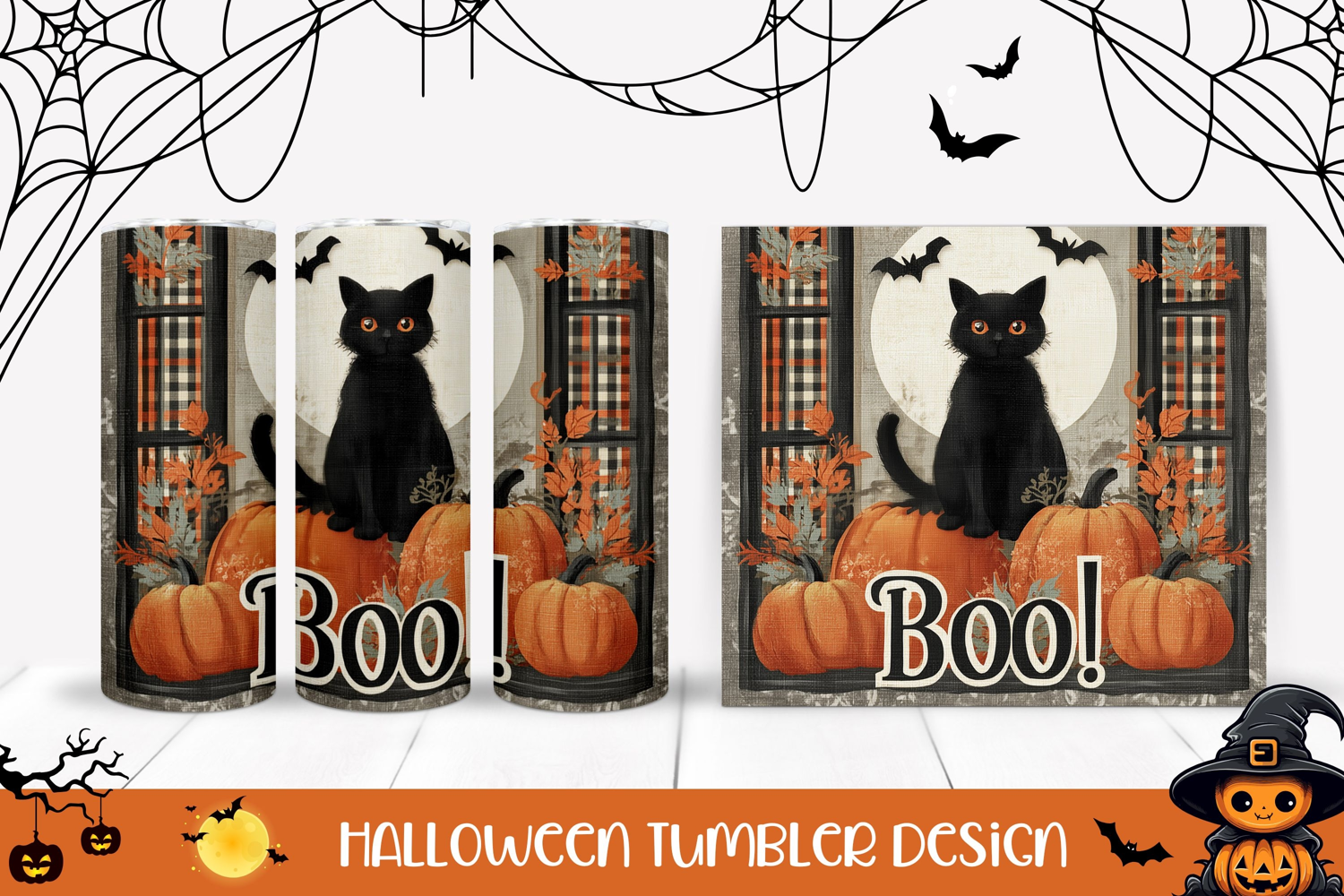 Boo Halloween Tumbler, Halloween Black Cat Tumbler Template example image 1
