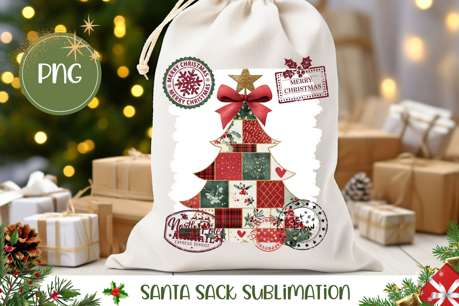 Patchwork Christmas Santa Sack, Cute Christmas Gift Bag example image 1