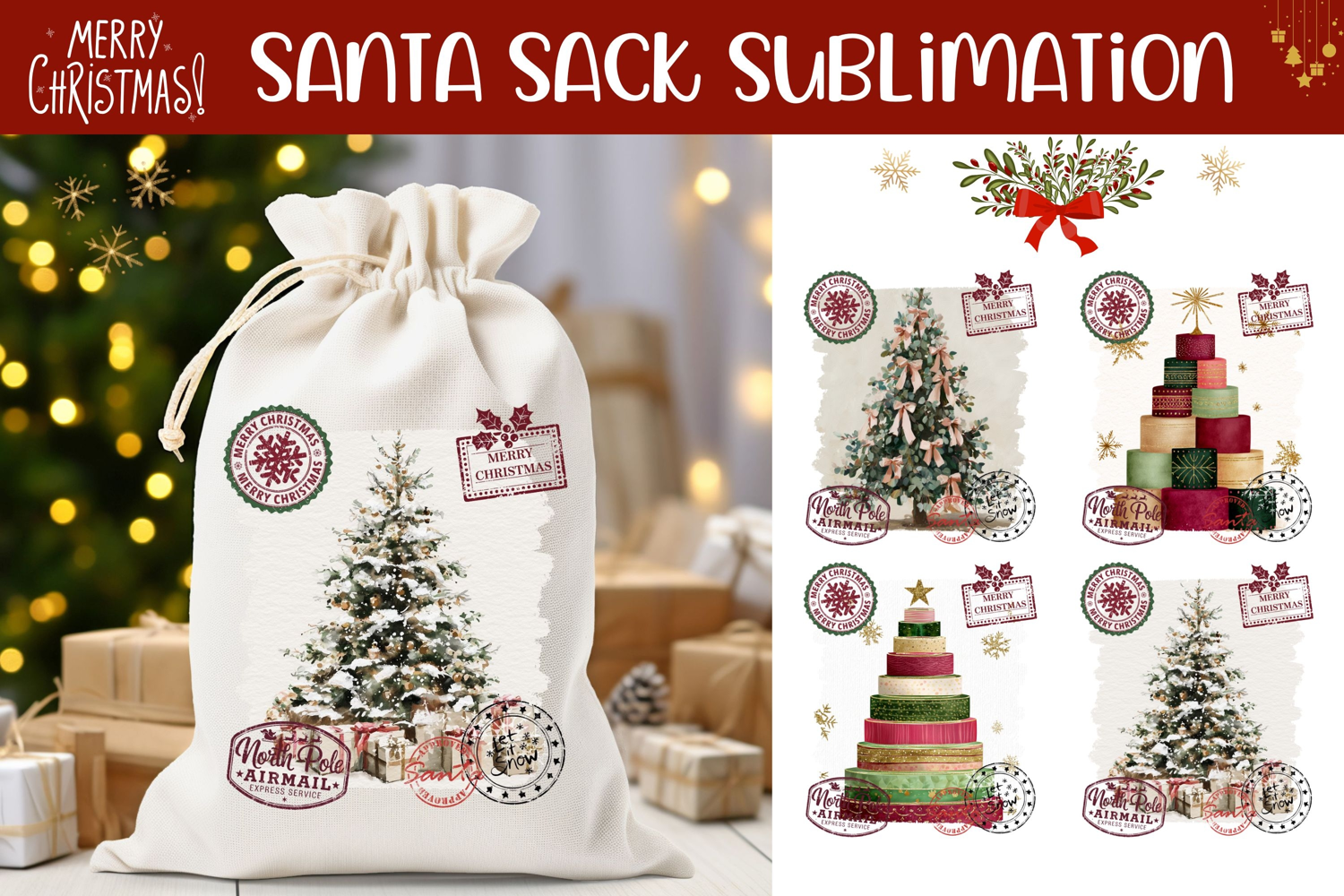 Christmas Tree Santa Sack Print, Winter Sublimation Design example image 1
