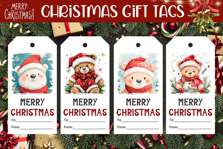 Cartoon Christmas Bear Gift Tags, Cozy Christmas Gift Tag