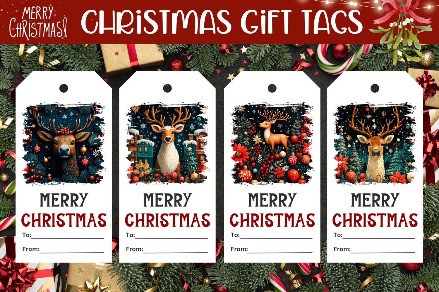Cartoon Christmas Deer Gift Tags, Christmas Gift Tag Designs