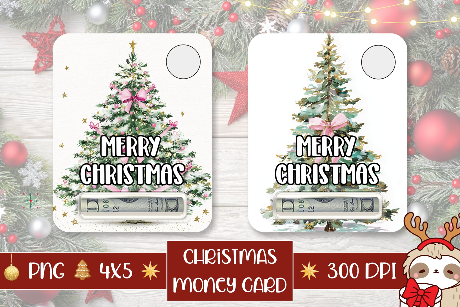 Watercolor Christmas Tree Money Card, Christmas Gift Cards example image 1