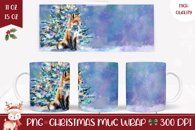 Watercolor Christmas Fox Mug Wrap, Christmas Tree Mug example image 1