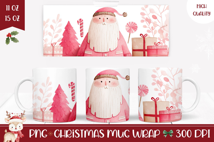Watercolor Santa Claus Mug Design, Pink Christmas Mug Wrap