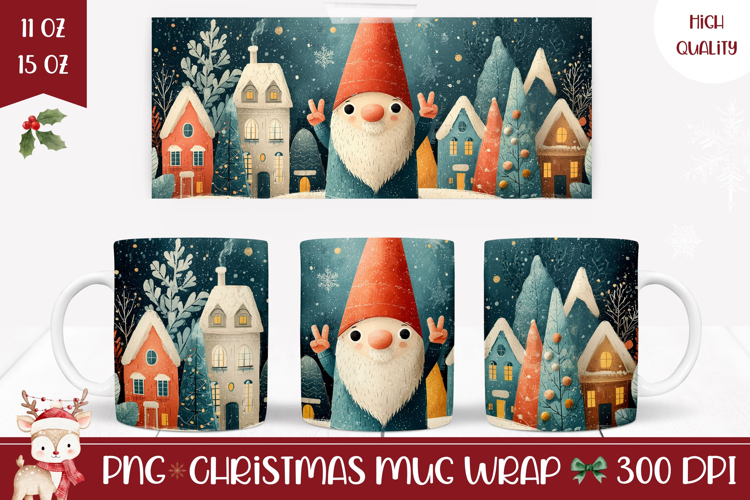 Cartoon Christmas Gnome Mug, Christmas Town Mug Wrap example image 1