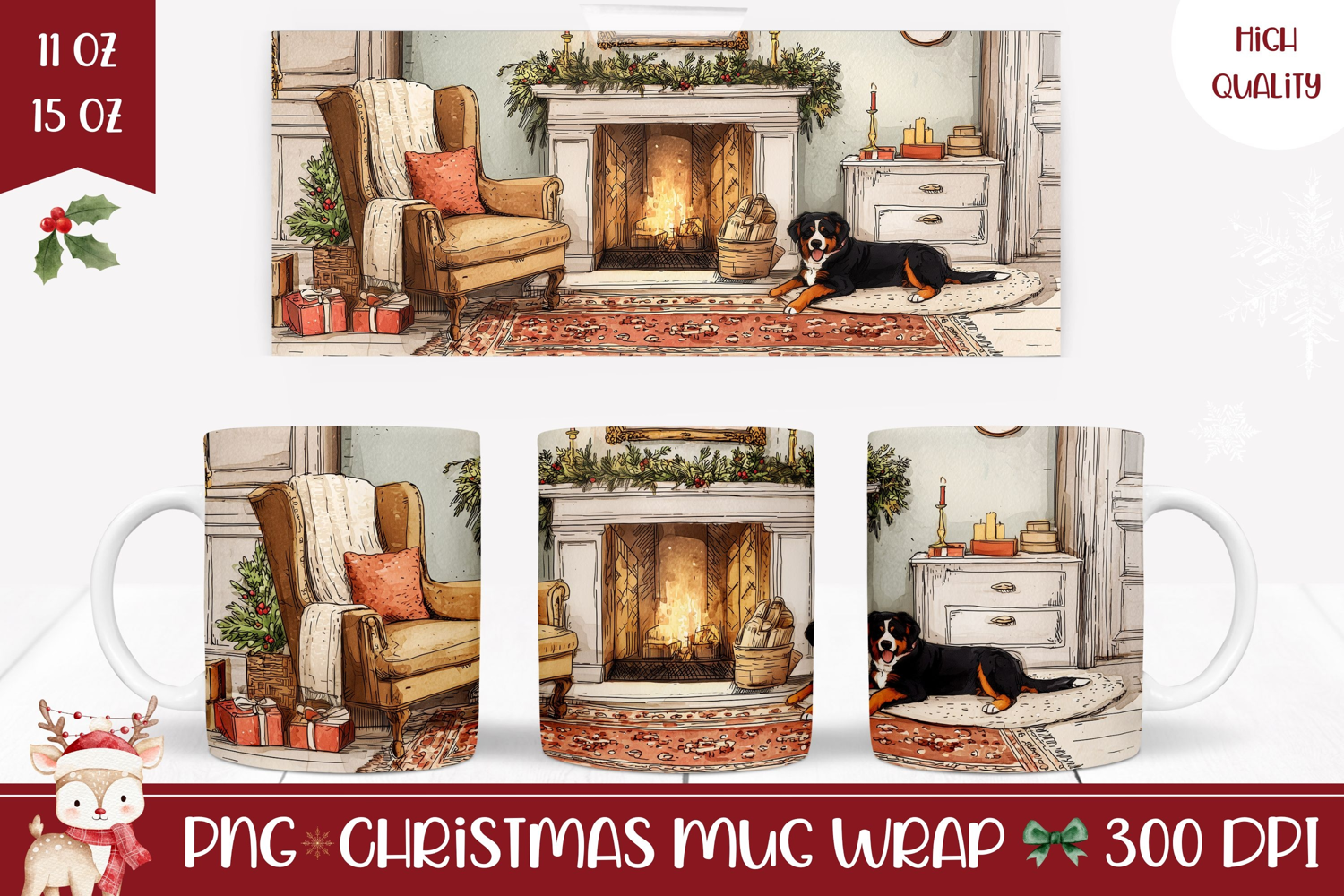 Christmas Dog Mug, Christmas Fireplace Mug Wrap Design example image 1