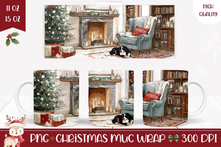 Christmas Dog Mug, Christmas Fireplace Mug Template example image 1