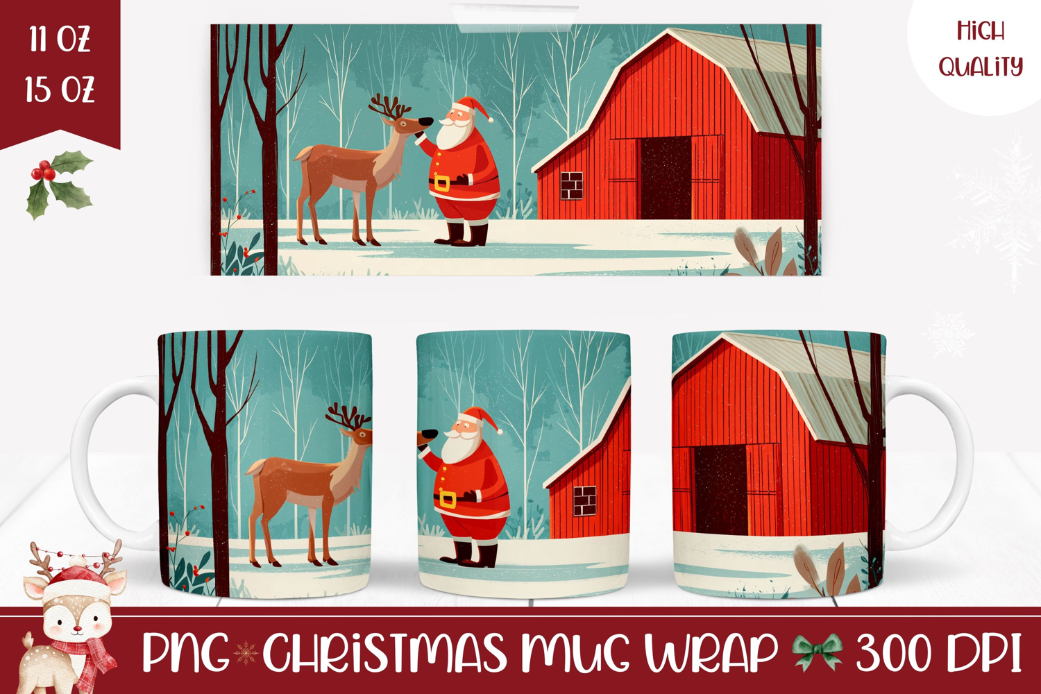 Cartoon Santa Claus Mug Design, Christmas Deer Mug Template example image 1