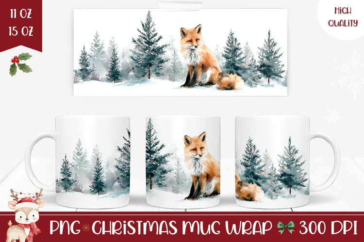 Watercolor Christmas Fox Mug, Winter Forest Mug Design example image 1