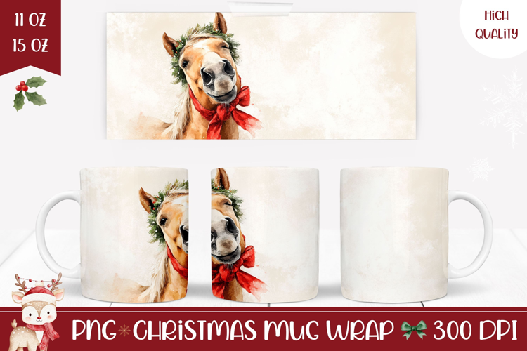 Watercolor Christmas Horse Mug, Christmas Animals Mug Wrap example image 1