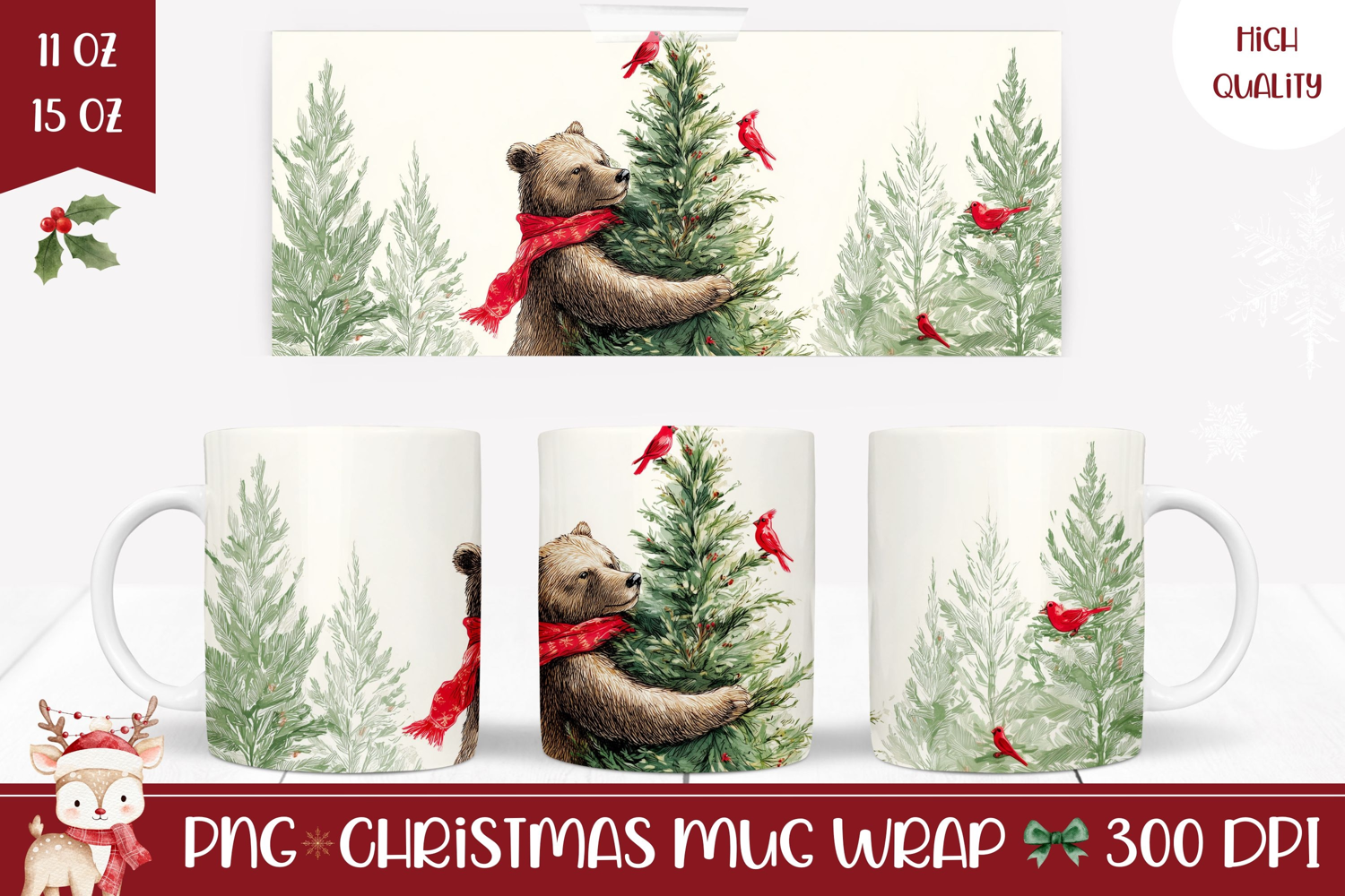 Similar Design Products to Vintage Christmas Bear Mug Design, Christmas Mug Wrap