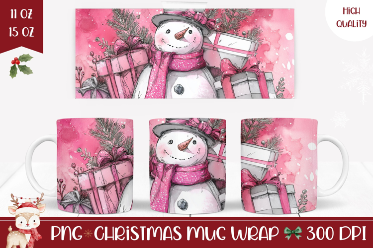 Pink Christmas Snowman Mug, Christmas Presents Mug Design example image 1