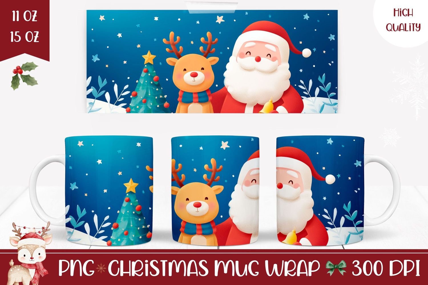 Cartoon Santa Claus Mug Template, Cute Christmas Deer Mug