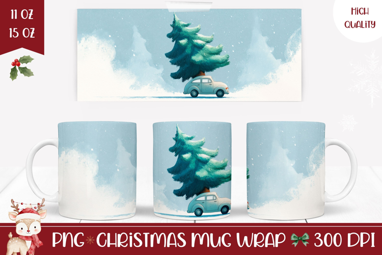 Cartoon Christmas Car Mug Sublimation, Christmas Tree Mug example image 1