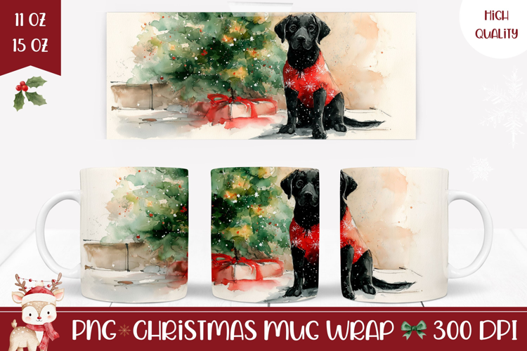 Watercolor Christmas Dog Mug, Christmas Tree Mug Design example image 1