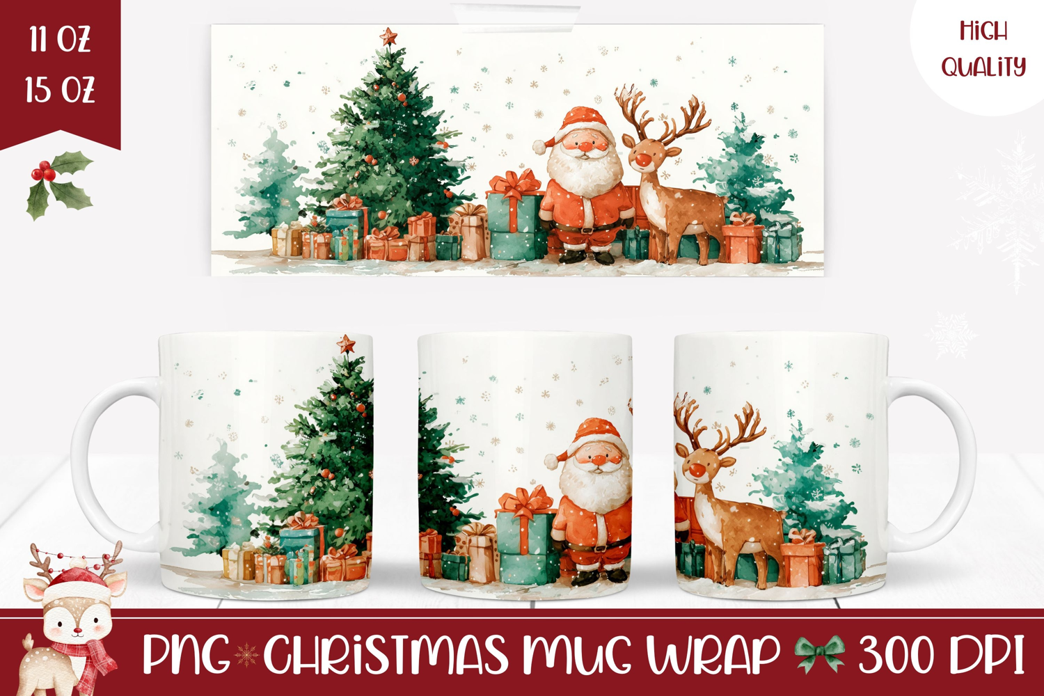 Similar Design Products to Watercolor Santa Claus Mug Design, Cute Christmas Mug PNG