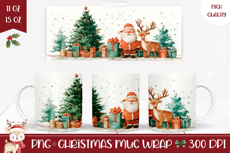 Watercolor Santa Claus Mug Design, Cute Christmas Mug PNG example image 1