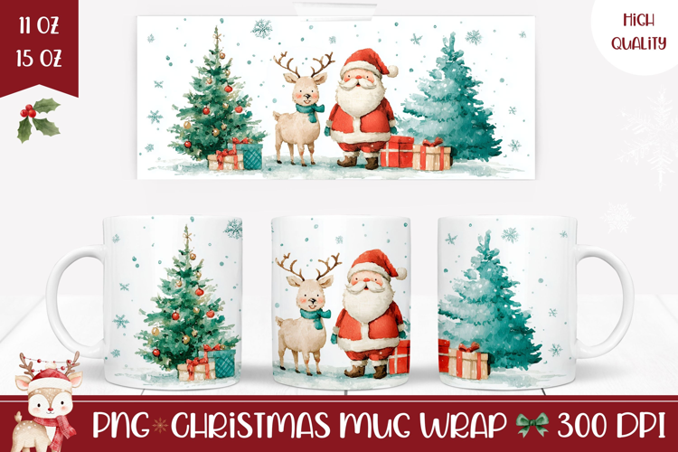 Similar Design Products to Watercolor Santa Claus Mug Design, Cute Christmas Mug Wrap