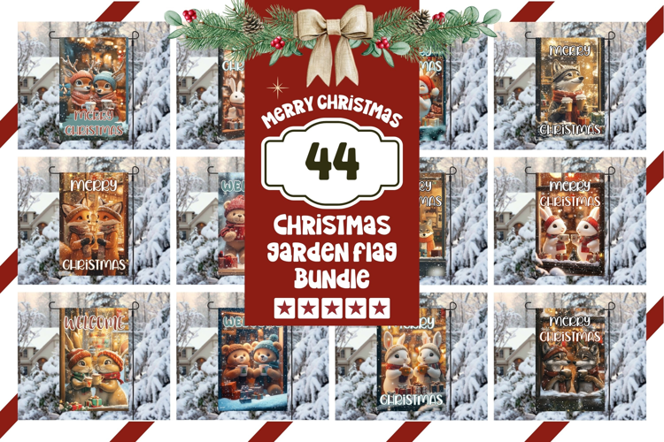 Christmas Animals Garden Flag Bundle, Christmas Garden Flag example image 1
