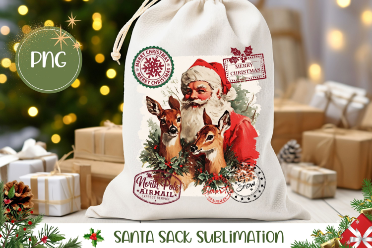 Vintage Christmas Santa Sack Sublimation example image 1