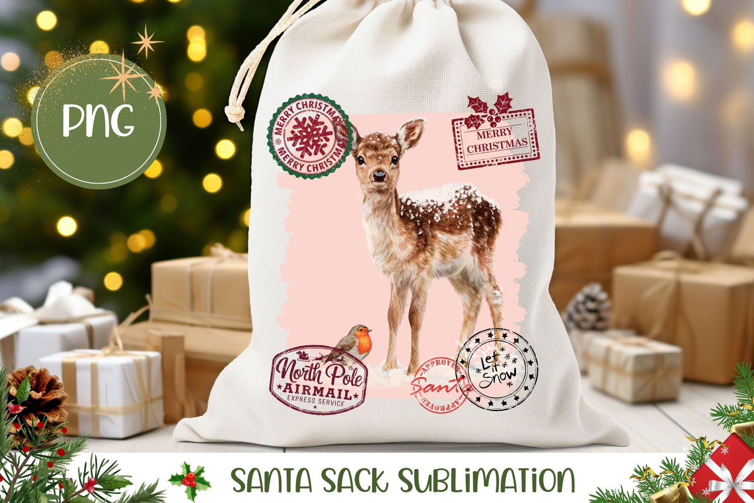 Cartoon Christmas Deer Santa Sack PNG, Baby Deer Sublimation example image 1