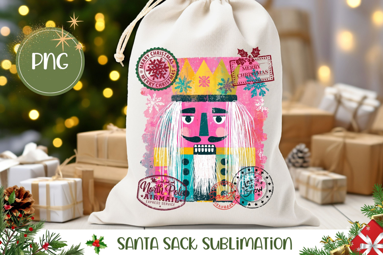 Pink Christmas Nutcracker Santa Sack, Winter Gift Bag example image 1