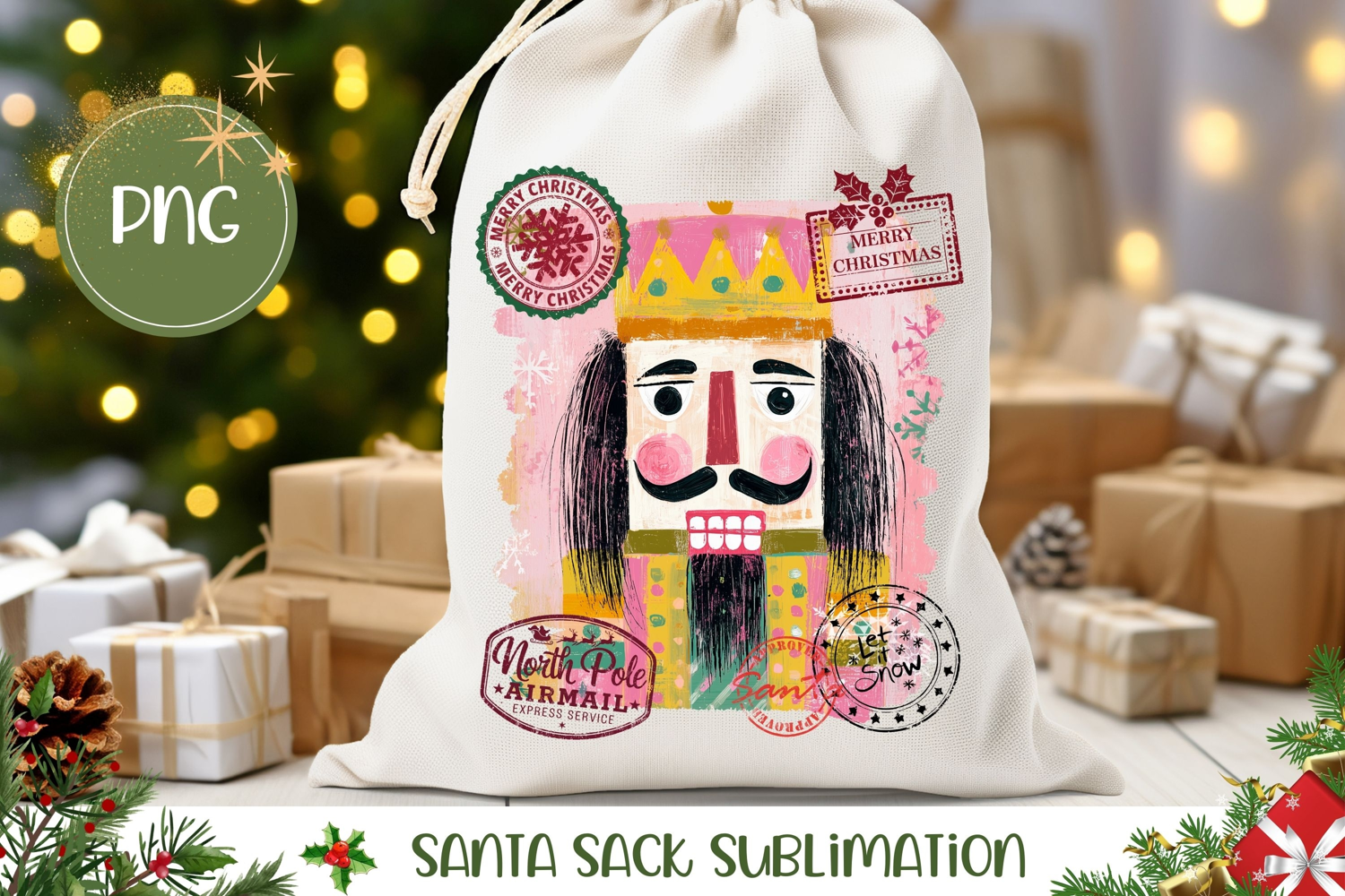 Pink Christmas Nutcracker Santa Sack, Winter Gift Bag Design example image 1
