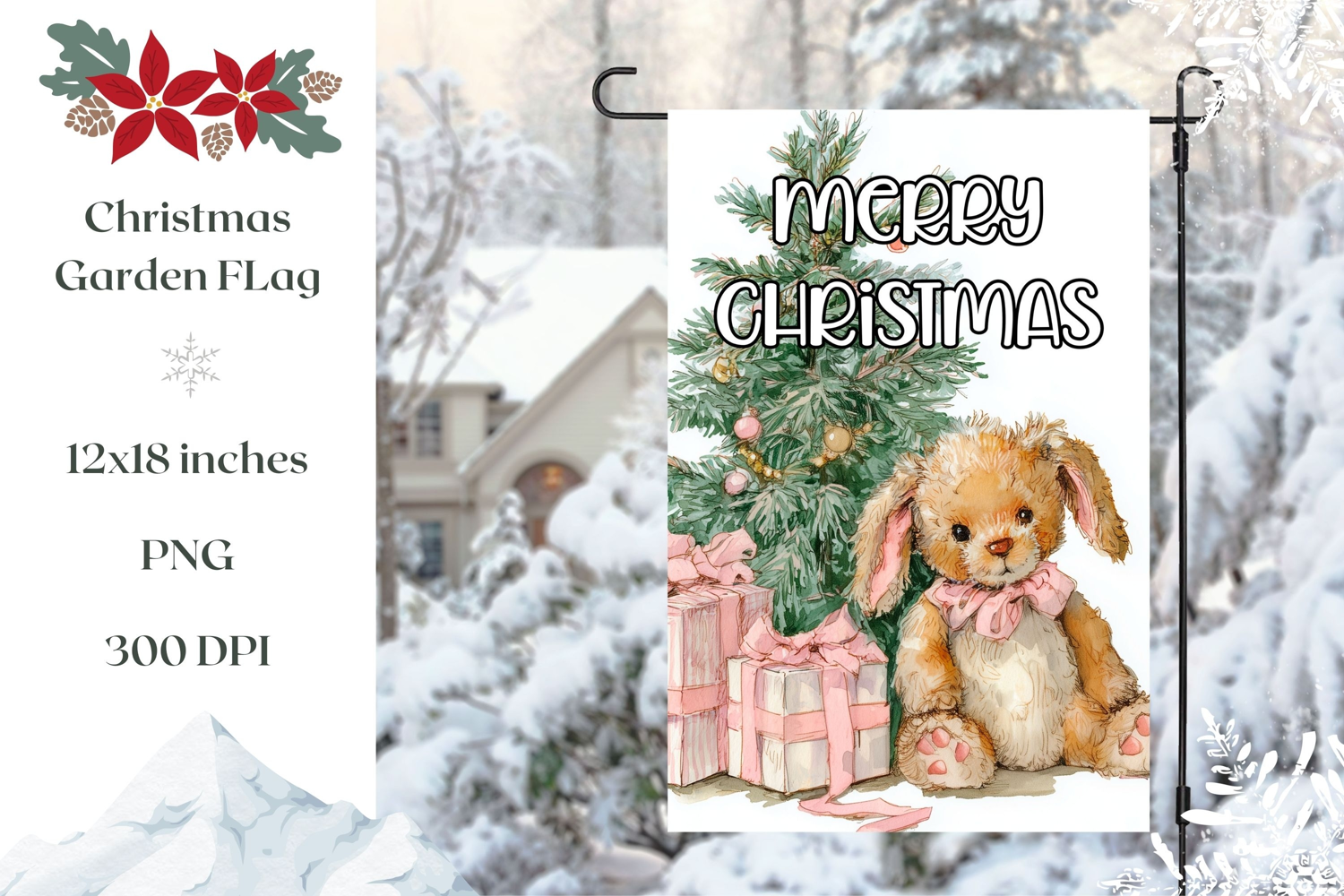 Watercolor Christmas Bunny Garden Flag Sublimation example image 1