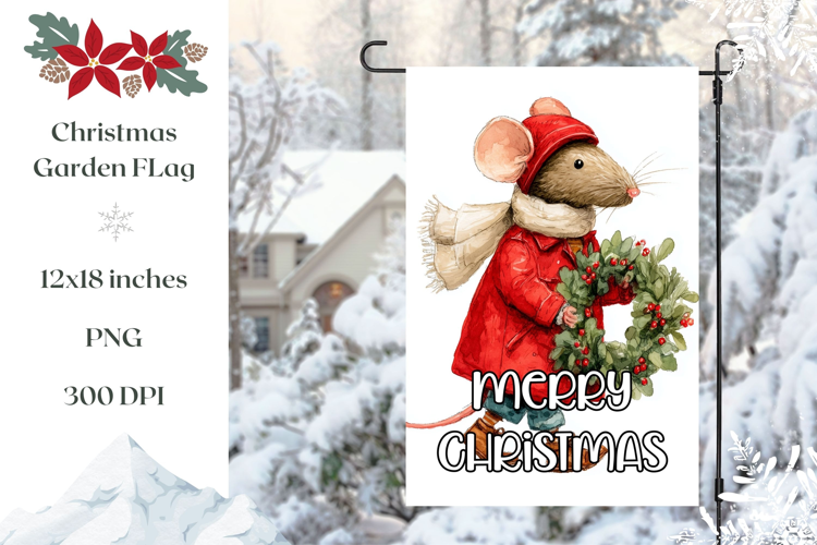 Cartoon Christmas Mouse Garden Flag Sublimation Design example image 1
