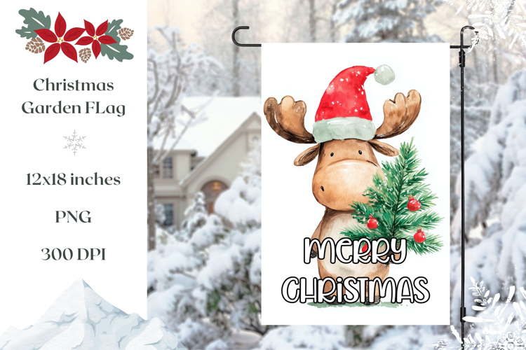 Watercolor Christmas Moose Garden Flag Sublimation Design example image 1