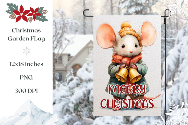 Cartoon Christmas Mouse Garden Flag Sublimation PNG example image 1