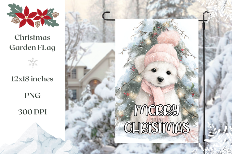 Watercolor Christmas Dog Garden Flag, Winter Garden Flag example image 1