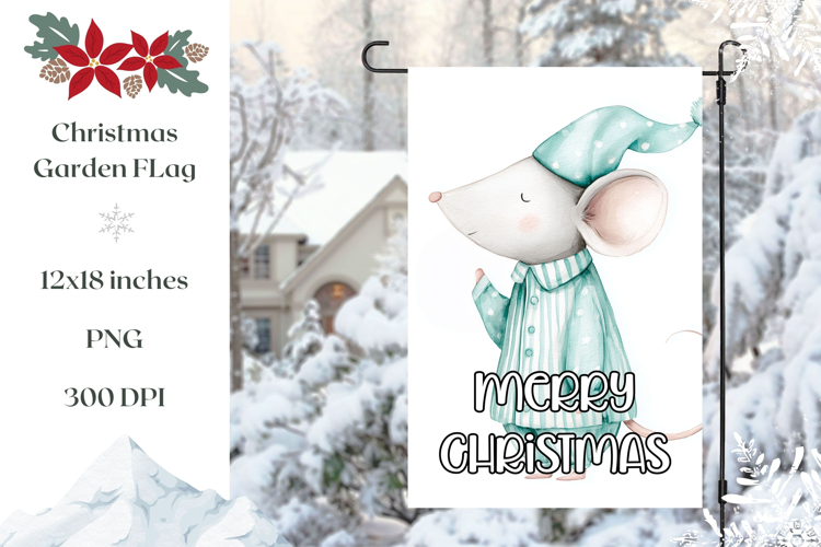 Watercolor Christmas Mouse Garden Flag, Winter Sublimation example image 1