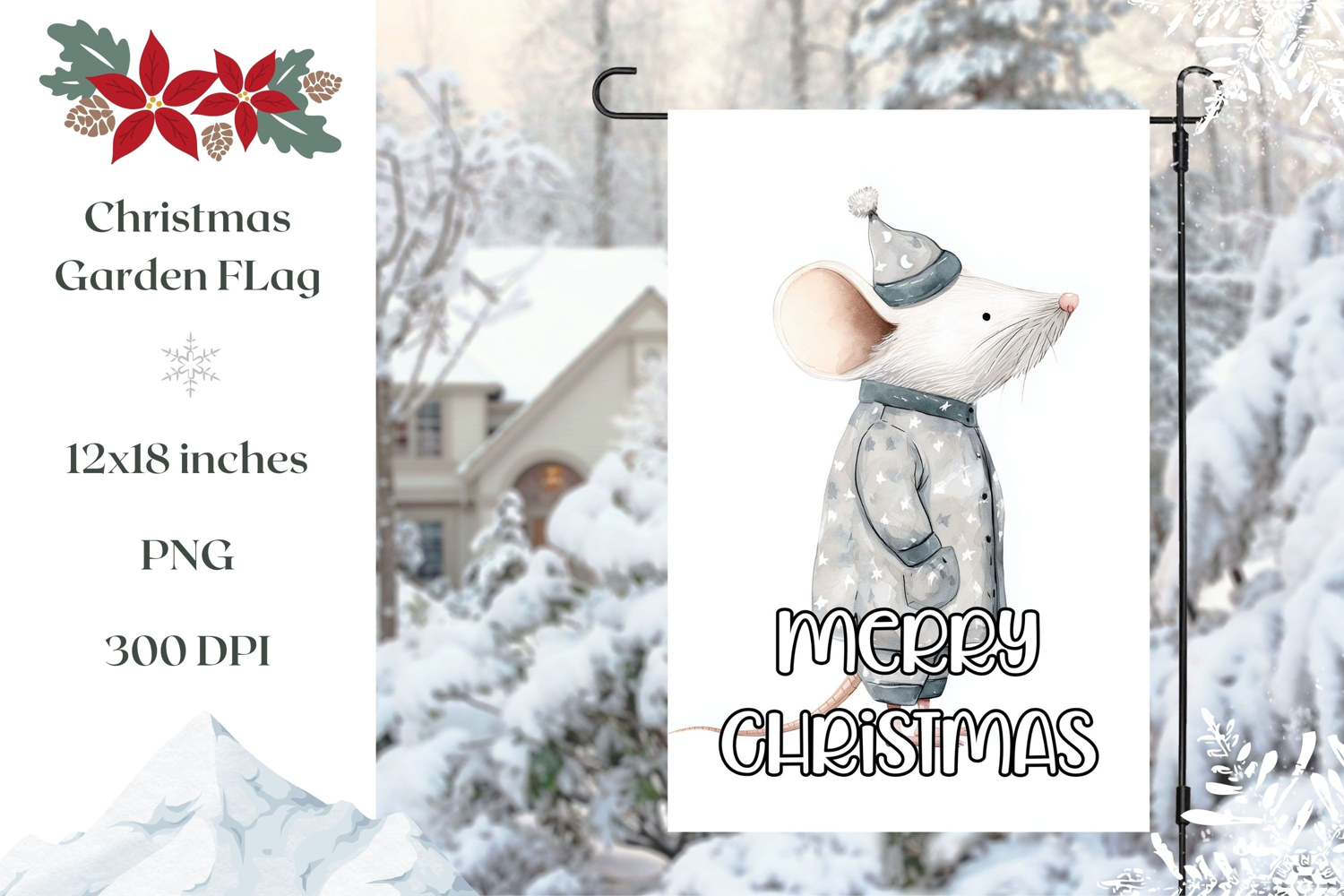 Cartoon Christmas Mouse Garden Flag, Winter Sublimation example image 1