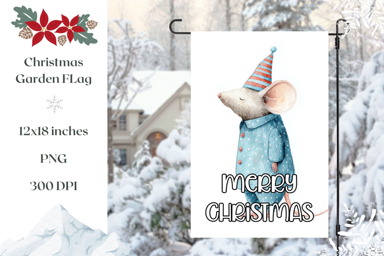 Cartoon Christmas Mouse Garden Flag, Winter Sublimation PNG example image 1