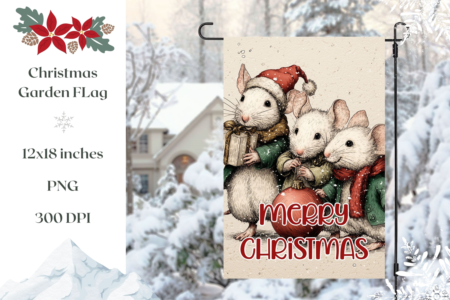 Cartoon Christmas Mouses Garden Flag, Winter Garden Flag example image 1