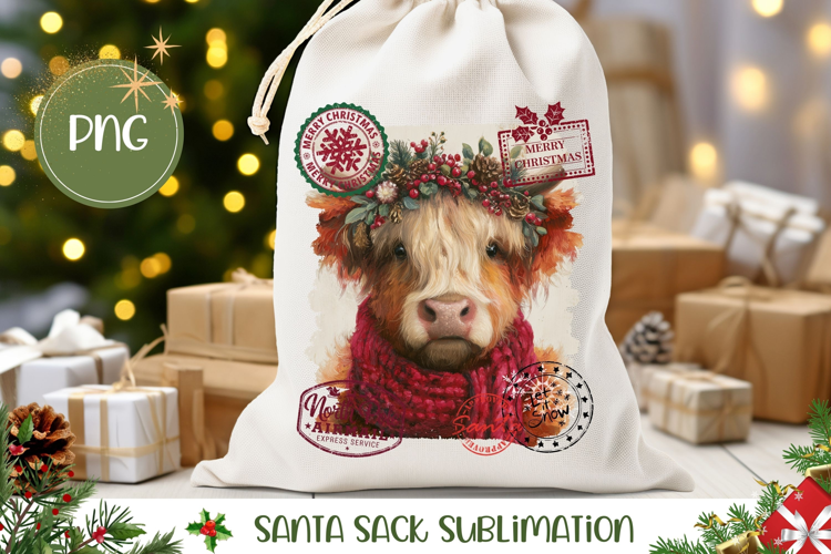 Highland Cow Santa Sack Template, Cute Gift Bag Design