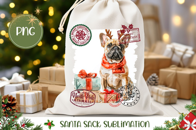 French Bulldog Santa Sack, Christmas Gift Bag Template example image 1