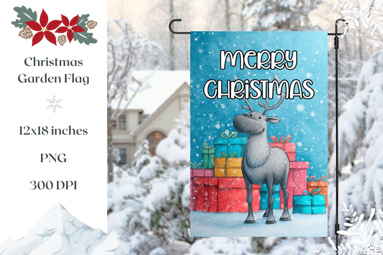 Cartoon Christmas Moose Garden Flag, Winter Garden Flag example image 1