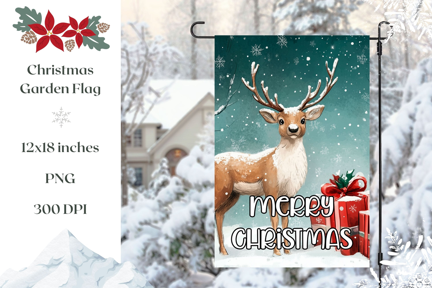 Merry Christmas Garden Flag PNG, Winter Deer Garden Flag example image 1