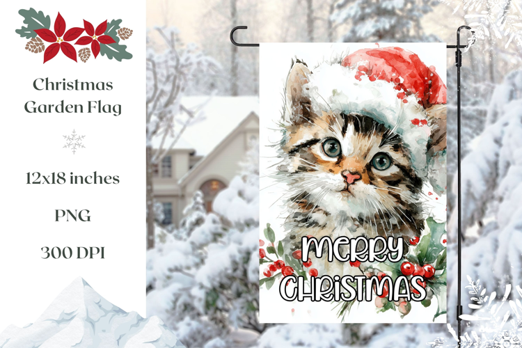 Merry Christmas Garden Flag, Winter Cat Garden Flag example image 1
