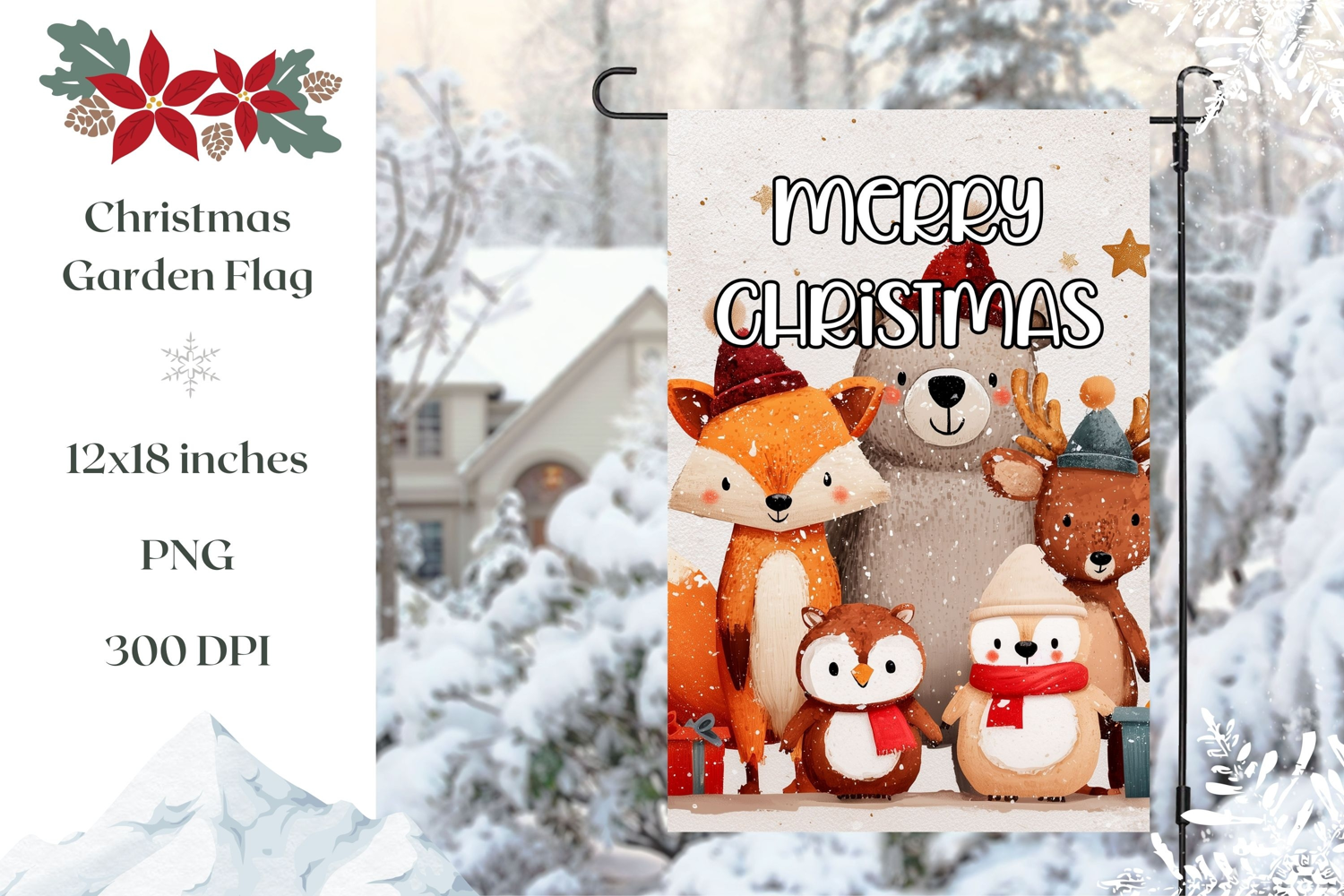 Winter Garden Flag Template, Christmas Animals Garden Flag example image 1