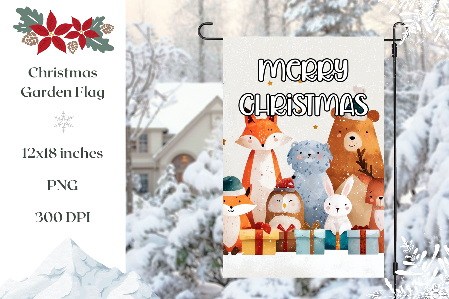 Winter Garden Flag Print, Christmas Animals Garden Flag