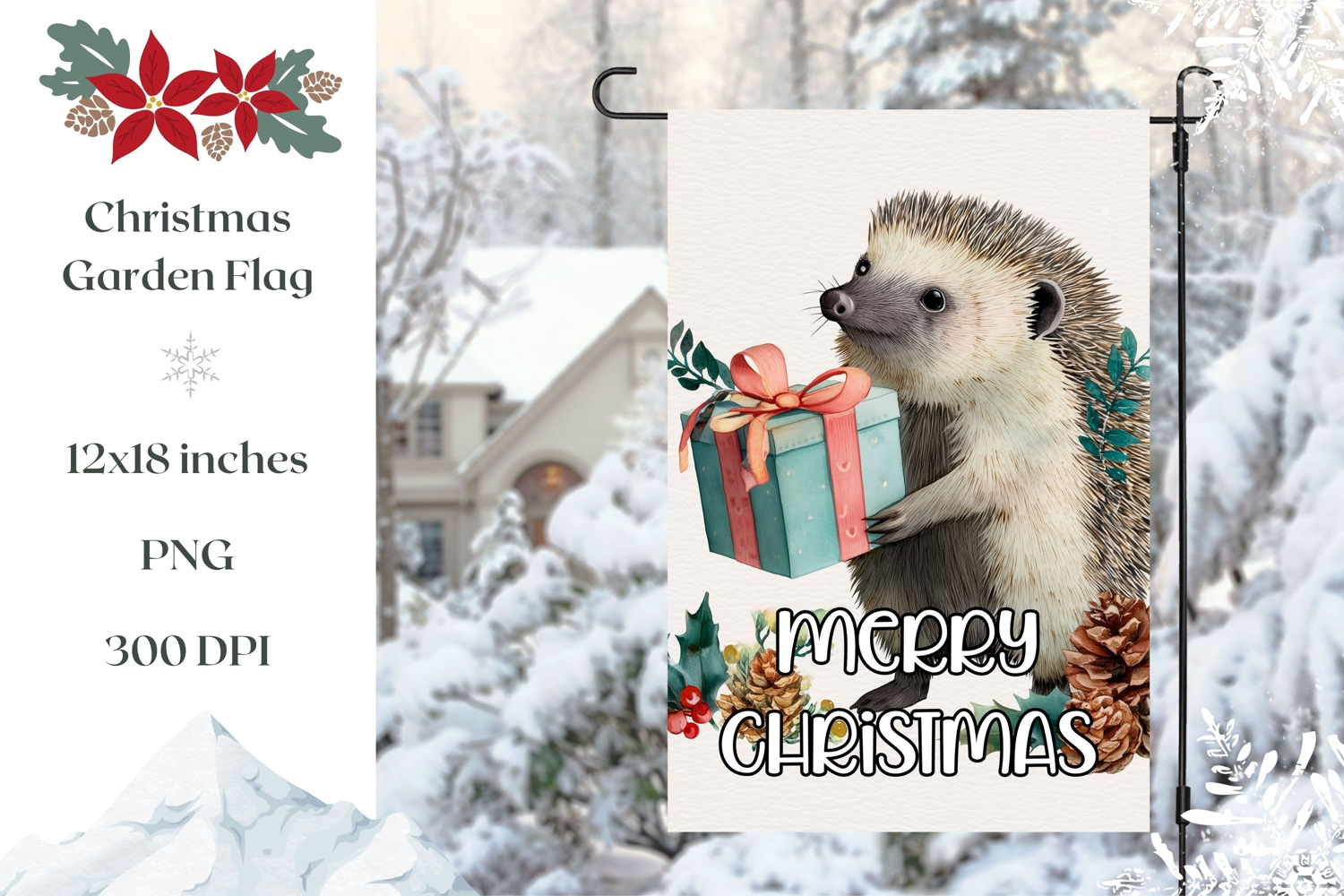 Christmas Hedgehog Garden Flag, Cute Garden Flag Design example image 1