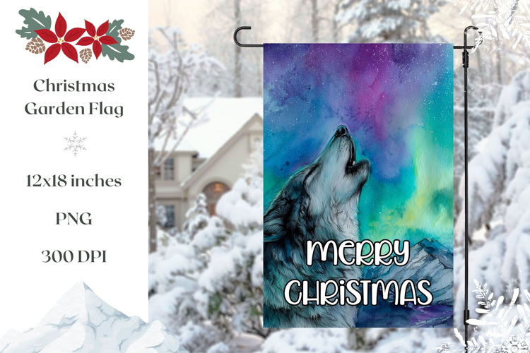 Watercolor Winter Wolf Garden Flag, Cute Garden Flag Print example image 1