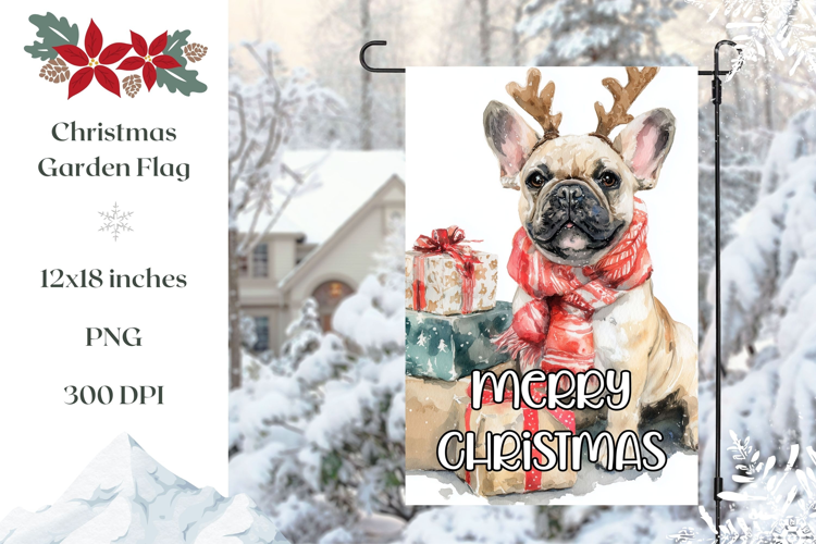 Watercolor Christmas Dog Garden Flag, Merry Christmas Flag example image 1