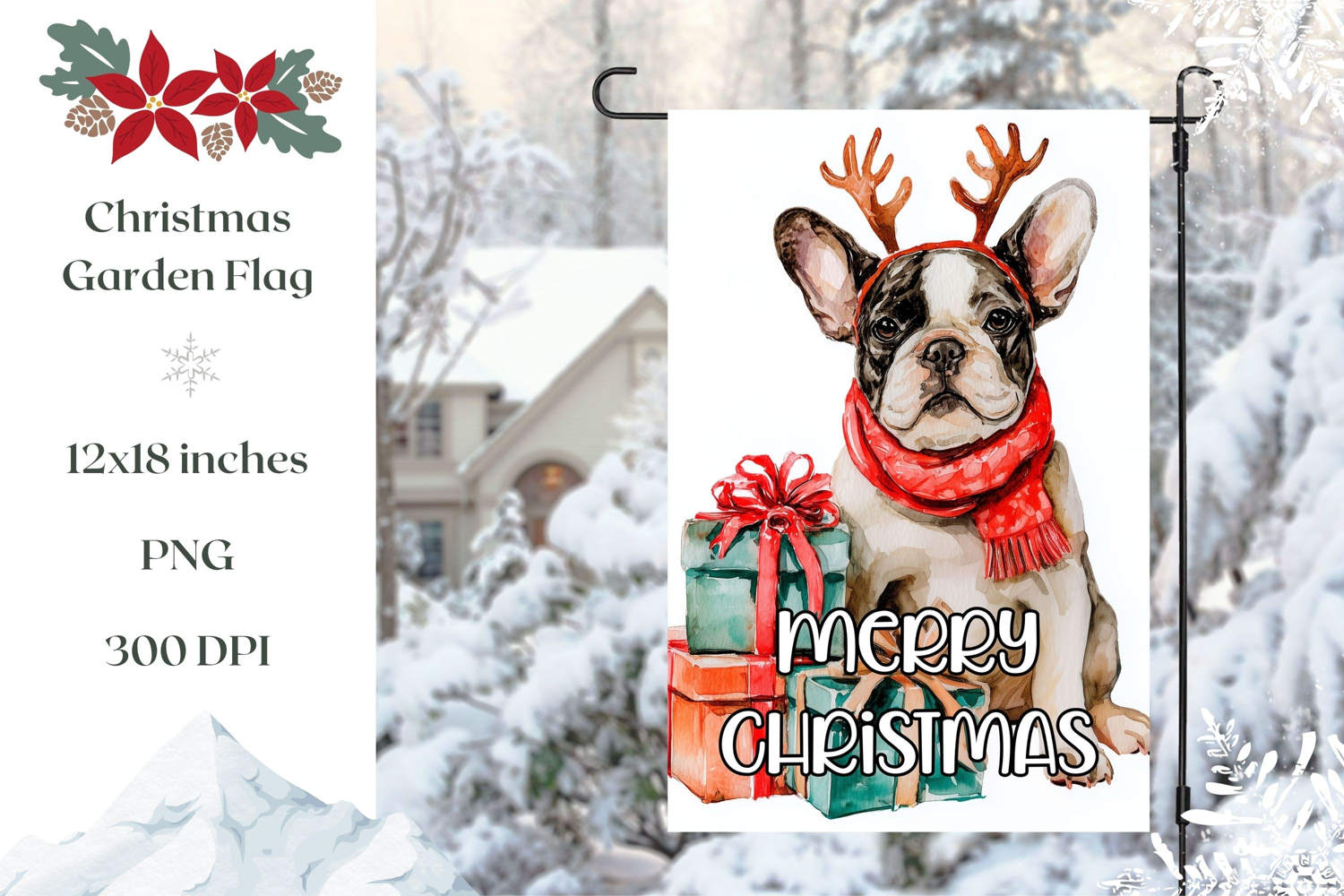 Watercolor French Bulldog Garden Flag, Christmas Garden Flag example image 1