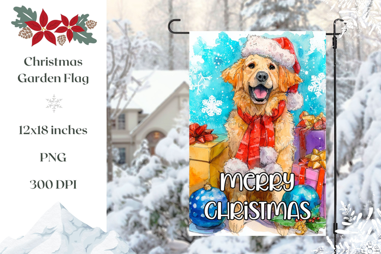 Watercolor Winter Dog Garden Flag, Christmas Garden Flag PNG example image 1
