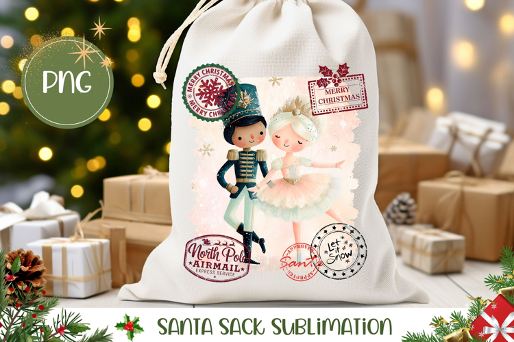 Cartoon Christmas Ballerina Santa Sack Sublimation PNG example image 1