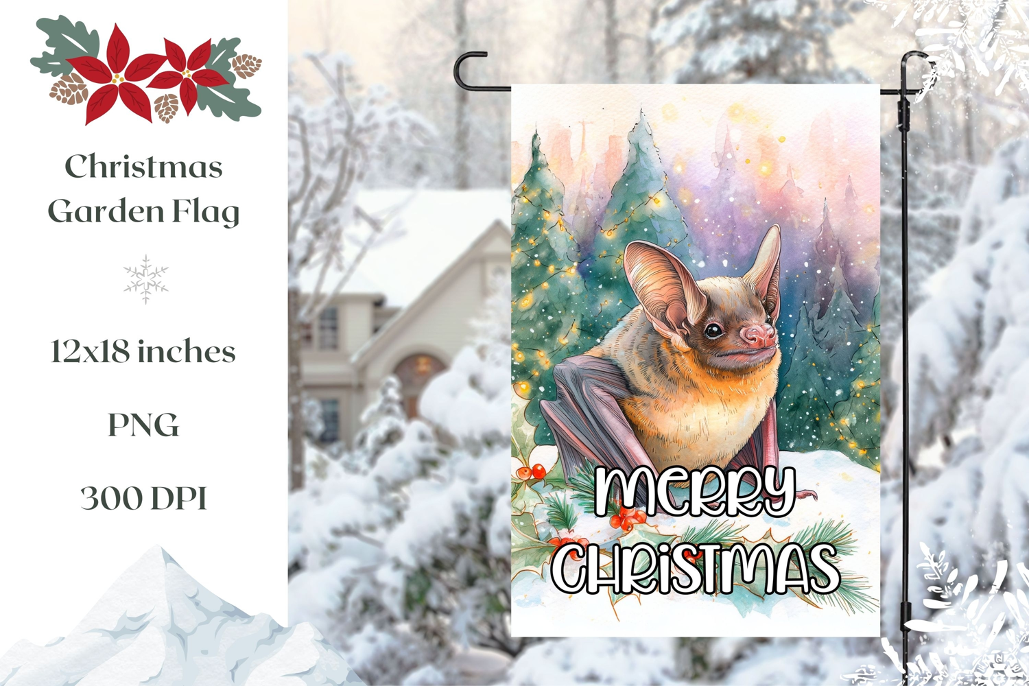 Watercolor Christmas Bat Garden Flag Template example image 1